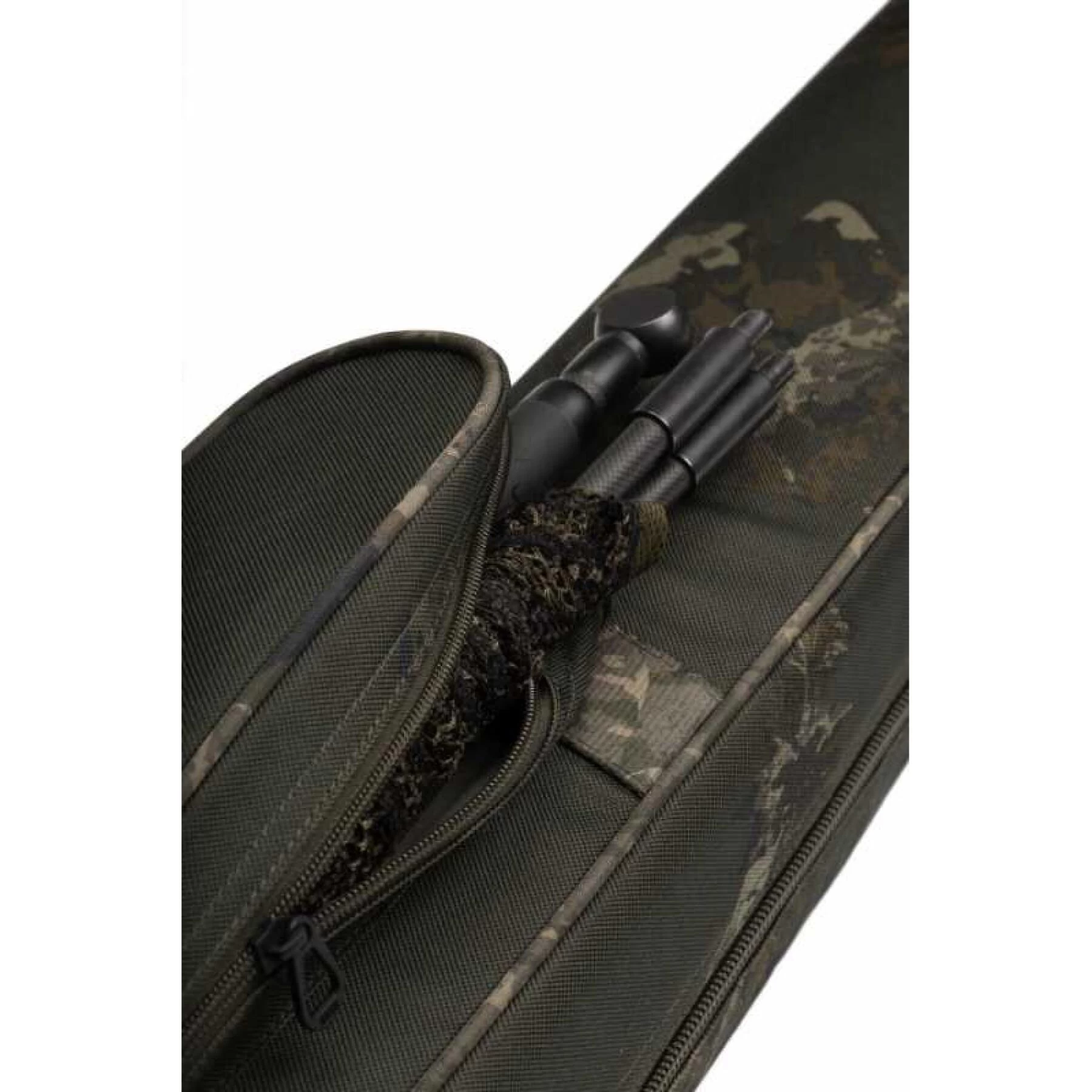 » Bretelles rembourrées réglables en néoprène camouflage » Séparateurs centraux rembourrés sur toute la longueur avec sangles Velcro » Les poches kangourou à la base avec boucles de compression et sangles permettent de transporter des HiProtect Single Skin supplémentaires pour une capacité de 2+2 ou 3+2 cannes » Filet extérieur zippé et poche pour bankstik avec base renforcée » Poignée de transport en sangle élastiquée » Poche plomb/centrale zippée
